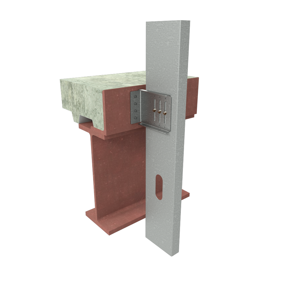 Universal Bypass Clips are used to attach exterior curtain wall studs to the building structure and provide either a rigid connection or deflection connection for vertical building movement independent of the cold-formed steel framing.